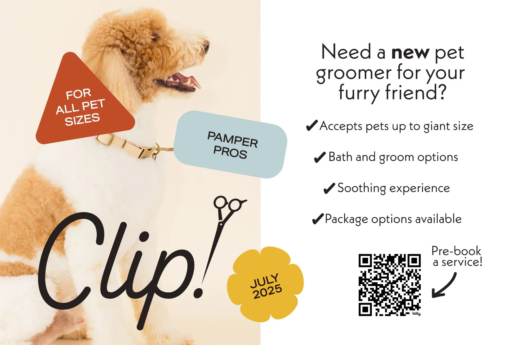 Led art and creative direction for Clip Pet Grooming’s launch shoot, ensuring brand-aligned visuals